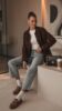 New Year’s warm outfit: Chocolate Brown suede jacket and simple blue denim elegant encounter