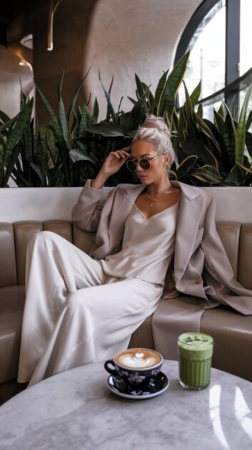 Indulge in New Year sophistication with a look that redefines elegance and ease. Picture lounging in a modern, upscale café, dressed in...