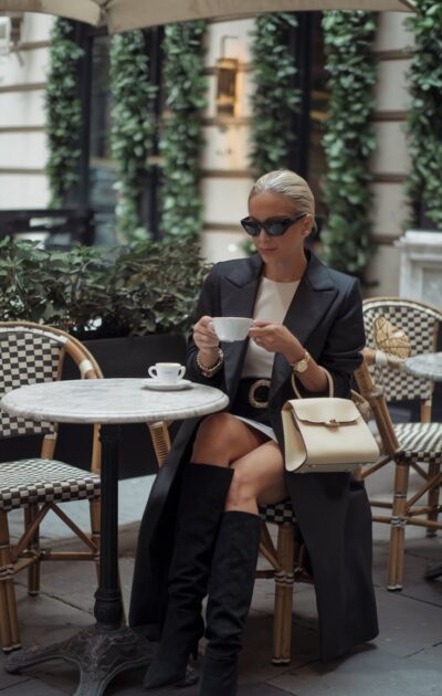 Sophisticated Urban Living: A Stylish Moment with Coffee