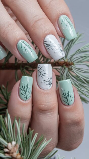 Serene Winter Nail Art: A Touch of Mint Green Elegance